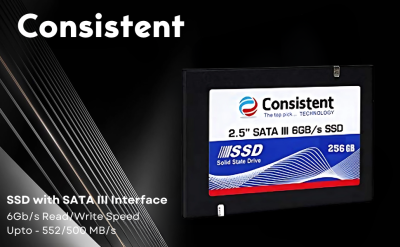 Consistent 2.5″ 256GB SSD with SATA III Interface, 6Gb/s Read/Write Speed Upto – 552/500 MB/s, 5 Years Warranty